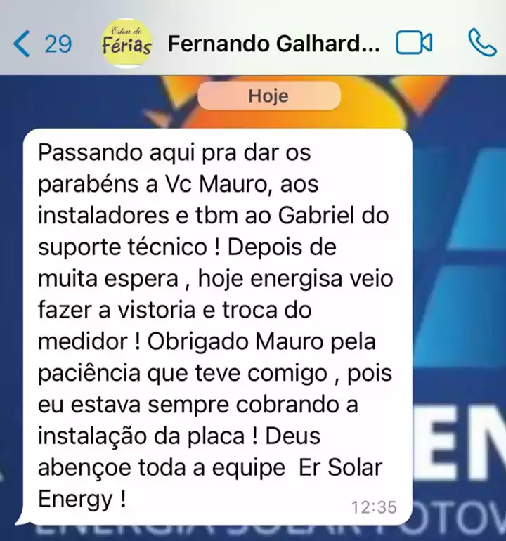 Nos orgulhamos em ser reconhecidos por nossos clientes como uma empresa séria, comprometida e que entrega um serviço de altíssima qualidade. E também é motivo de orgulho vermos nossos clientes cada vez mais satisfeitos com a economia gerada pela energia solar fotovoltaica e cada vez mais independentes da concessionária de energia.